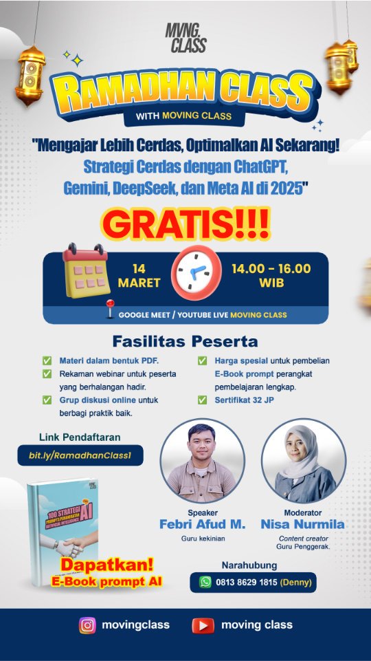 Berawal dari REMATH TV di 2017, kami bertransformasi menjadi Moving Class, platform edukasi multidisiplin yang inklusif untuk membuat belajar lebih inspiratif, menyenangkan, dan bermakna.